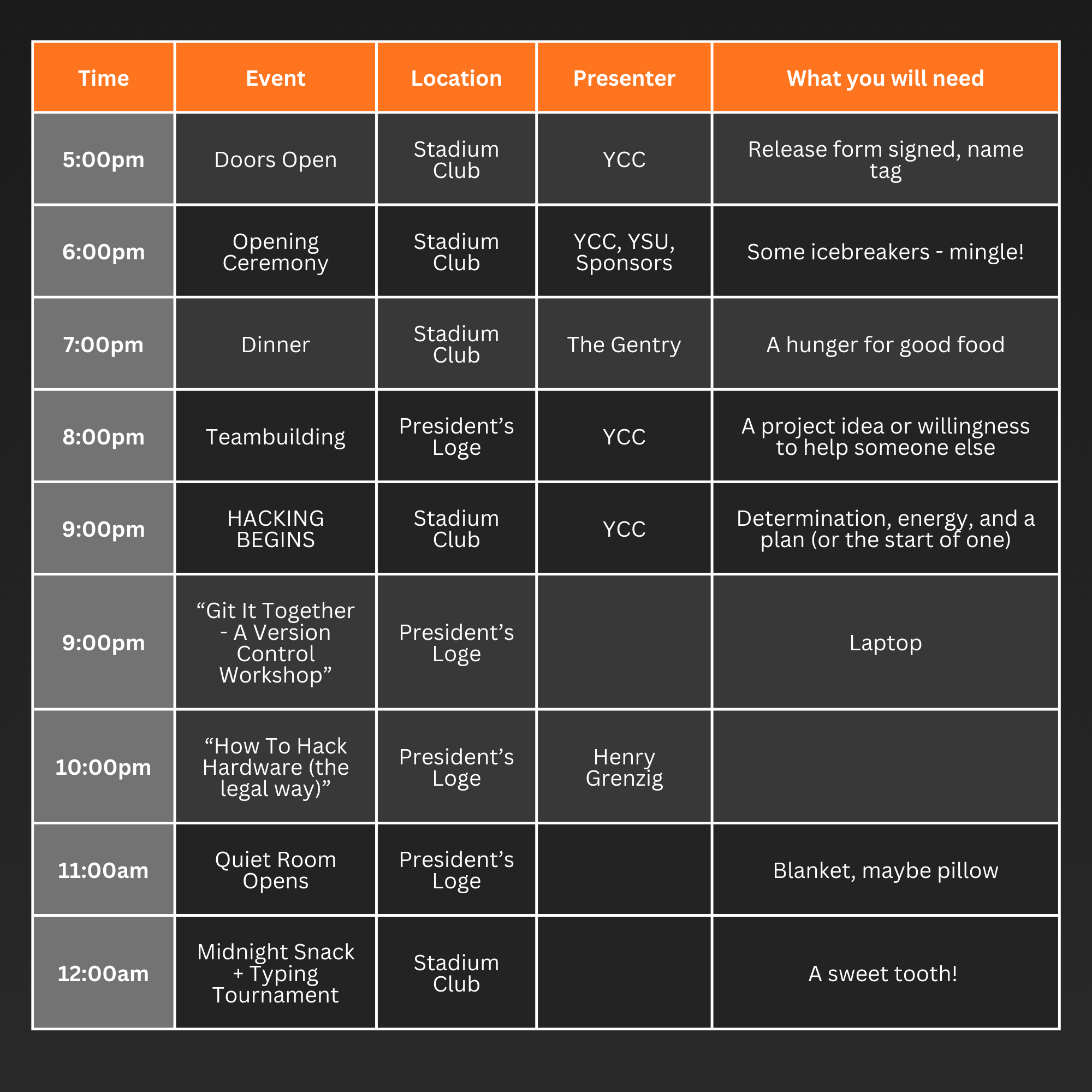 If you are under 18 or a high school student please email us at contact@ysucomputerclub.com prior to the event to be sent parent/guardian liability waiver documents.